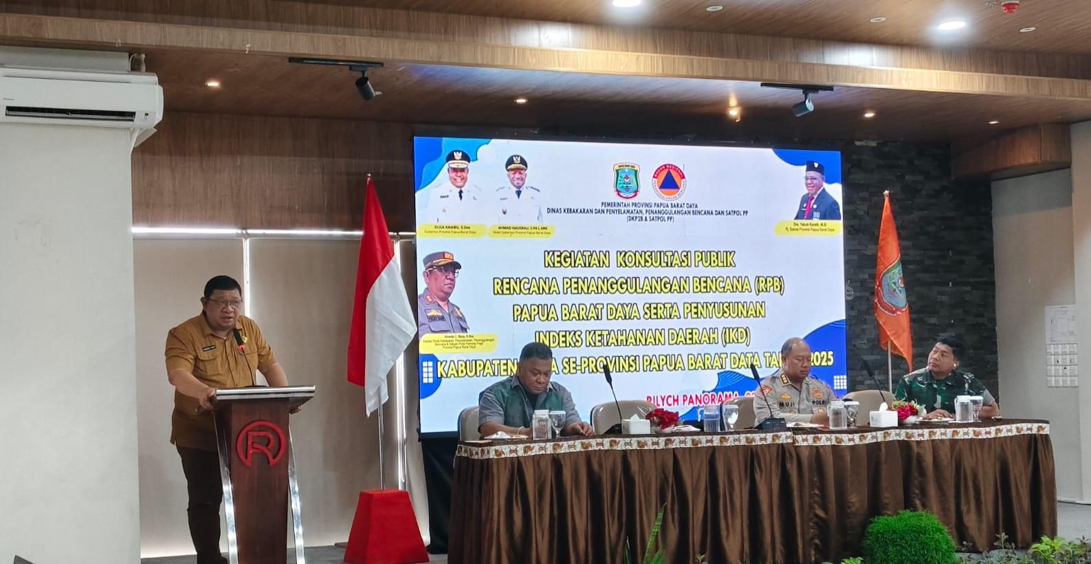 Pemerintah Provinsi Papua Barat Daya melalui Dinas Kebakaran dan Penyelamatan Penanggulangan Bencana (DKP2B) serta Satpol PP menggelar Konsultasi Publik Rencana Penanggulangan Bencana (RPB) dan penyusunan Indeks Ketahanan Daerah (IKD) tingkat kabupaten/kota tahun 2025.