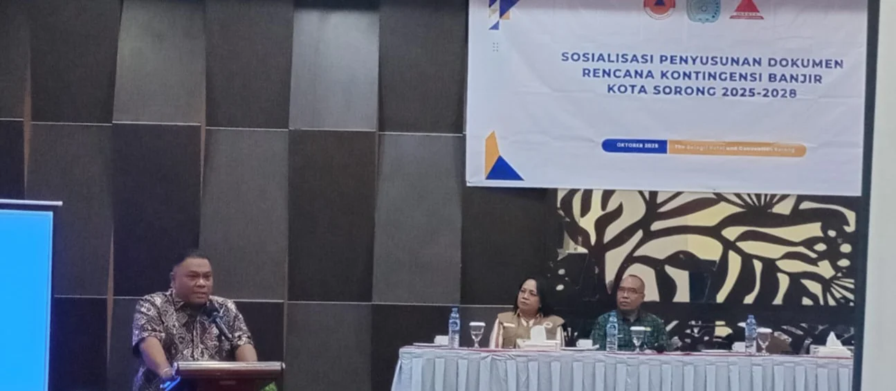 “Hari ini kami menyusun dokumen rencana kontingensi banjir untuk kota Sorong. Ini penting karena kota ini belum memiliki dokumen tersebut, sementara regulasi mewajibkan setiap daerah punya rencana kontingensi bencana,” ujarnya.